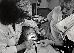 Pediatric dentistry (formerly pedodontics in American English or paedodontics in Commonwealth English) is the branch of dentistry dealing with children from birth through adolescence.[1] The specialty of pediatric dentistry is recognized by the American Dental Association,[2] Royal College of Dentists of Canada,[3] and Royal Australasian College of Dental Surgeons.[4]