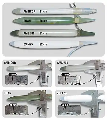 The malleable (also known as non-inflatable or semi-rigid) penile prosthesis is a set of a pair of rods implanted into the corpora of the penis. The rods are hard, but 'malleable' in the sense that they can be adjusted manually into the erect position.[15] There are two types of malleable implants: one that is made of silicone and does not have a rod inside, also called soft implants, and another with a silver or steel spiral wire core inside coated with silicone. Some of the models have trimmable tails intended for length adjustment.[9] Currently, a variety of malleable penile implants are available worldwide.[16]