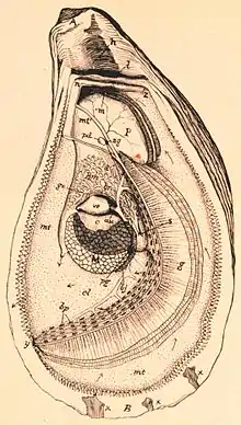 Perkinsosis' or "dermo" is the disease condition of the oyster. The name "dermo" was coined when the protist was named Dermocystidium marinum, and it is still commonly used.[6] Infested cells are destroyed by the reproducing protist, and many trophozoites are released into the tissues of the host, or into its bloodstream. There, they infest more cells or are excreted or released when the host dies and disintegrates. The infected oyster becomes stressed, its tissues are pale in color, its gamete production is retarded, its growth slows, it becomes emaciated, its mantle shrivels and pulls away from the shell, and it may develop pockets of pus-like fluid.[3] Lysis of tissues and blockage of blood vessels causes fatality, but many oysters can persist up to 3 years with active infections.[6]