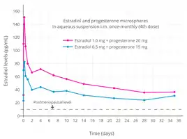 | Injection[lower-alpha 4] | Estradiol | Microspheres | 1 mg/mL | Juvenum E |