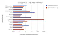 On the other hand, it has been suggested by some authors that the high levels of estrone and/or estrone conjugates with oral estradiol may result in excessive estradiol levels in certain tissues such as the breasts and endometrium, due to high expression in these tissues of the requisite enzymes (17β-HSDs and STS) necessary to transform these metabolites back into estradiol.[90][87][106][107] In accordance, circulating levels of estrone sulfate have been found to be positively associated with breast density in postmenopausal women treated with oral estradiol, with 1.3% higher breast density observed for every 1 ng/mL greater level of estrone sulfate.[108][109] Similarly, levels of estradiol, estrone, and estrone sulfate are all strongly associated with the risk of breast cancer in women.[108] Preclinical studies have shown that estrone sulfate, via local transformation into estradiol, stimulates the growth of mammary cancer cells.[110][111]