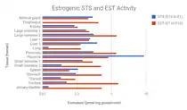 The transformation of estradiol into estrone and estrogen conjugates is reversible.[10] As such, these metabolites can be converted back into estradiol.[10] About 15% of orally administered estradiol is transformed into estrone and 65% into estrone sulfate.[12] About 5% of estrone and 1.4% of estrone sulfate is converted back into estradiol.[12] An additional 21% of estrone sulfate is converted into estrone, whereas transformation of estrone into estrone sulfate is approximately 54%.[12] The interconversion between estradiol and estrone is mediated by 17β-hydroxysteroid dehydrogenases (17β-HSDs),[12] whereas the conversion of estrone into estrone sulfate is mediated by estrogen sulfotransferases (ESTs) and the transformation of estrone sulfate into estrone by steroid sulfatase (STS).[94][95] The metabolic clearance rates and hence blood half-lives of estrogen conjugates like estrone sulfate are much longer than those of estradiol and estrone.[10][12][87] Estrogen conjugates, primarily estrone sulfate, serve as a large circulating reservoir for estradiol, and because of this, they function to greatly extend the biological half-life of oral estradiol.[10][12] As such, the biological half-life of oral estradiol is a composite parameter that is dependent on interconversion between estradiol and estrogen conjugates, as well as on enterohepatic recirculation.[12] Whereas the biological half-life of estradiol given by intravenous injection is about 0.5 to 2 hours, the biological half-life of oral estradiol has a range of 13 to 20 hours due to the large and long-lasting pool of estrogen conjugates that is formed during first-pass metabolism and that serves to continuously replenish circulating estradiol levels.[12][10][9]