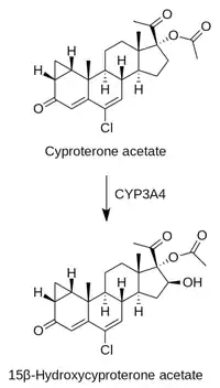 | Metabolites | • 15β-OH-CPA (major)[1][9] • Cyproterone (minor)[10] • Acetic acid (minor)[10] |