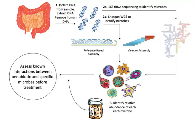 Efforts to understand the interaction between specific xenobiotics and the microbiome have traditionally involved the use of in vivo as well as in vitro models.[7] Recently, next generation sequencing of genomic DNA obtained from a community of microbes has been used to identify organisms within microbial communities, allowing for accurate profiles of the composition of microbes within an environment. Initiatives such as the Human Microbiome Project (HMP) have aimed to characterize the microbial composition of the oral, gut, vaginal, skin and nasal environments.[8] This and other microbiome characterization projects have accelerated the study of pharmacomicrobiomics. An extensive understanding of the microbiome in the human body can lead to the development of novel therapeutics and personalized drug treatments that are not potentiated or activated by processes carried out by the microbiome.