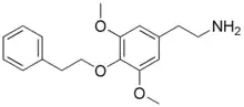 Phenescaline, or 3,5-dimethoxy-4-phenethoxyphenethylamine, is a lesser-known psychedelic drug. It is an analog of mescaline. Phenescaline was first synthesized by Alexander Shulgin. In his book PiHKAL (Phenethylamines i Have Known And Loved), the minimum dosage is listed as 150 mg, and the duration is unknown.[1] Phenescaline produces a threshold effect. Very little data exists about the pharmacological properties, metabolism, and toxicity of phenescaline.
