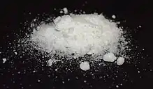 Phenethylamine is a primary amine, the amino-group being attached to a benzene ring through a two-carbon, or ethyl group.[21] It is a colourless liquid at room temperature that has a fishy odor, and is soluble in water, ethanol and ether.[21] Its density is 0.964 g/ml and its boiling point is 195 °C.[11] Upon exposure to air, it combines with carbon dioxide to form a solid carbonate salt.[22] Phenethylamine is strongly basic, pKb = 4.17 (or pKa = 9.83), as measured using the HCl salt, and forms a stable crystalline hydrochloride salt with a melting point of 217 °C.[21][23]