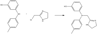 Phentolamine can be synthesized by alkylation of 3-(4-methylanilino)phenol using 2-chloromethylimidazoline:[13][14]