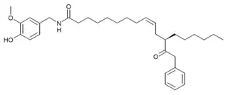Phenylacetylrinvanil (IDN-5890) is a synthetic analogue of capsaicin which acts as a potent and selective agonist for the TRPV1 receptor, with slightly lower potency than resiniferatoxin, though still around 300 times the potency of capsaicin. It is used to study the function of the TRPV1 receptor and its downstream actions, and has also shown anti-cancer effects in vitro.[1][2][3]