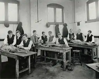 PCOM was established on January 24, 1899 as the Philadelphia College and Infirmary of Osteopathy (PCIO).[6] It was the third osteopathic medical school to open in the United States.[7] In September 1899, the first PCIO degree was awarded, and in February 1900, the first PCIO "class," comprising one woman and one MD, graduated. In May 1921, PCIO was renamed to Philadelphia College of Osteopathy (PCO).[8] In 1967, the school adopted its present-day name, becoming the Philadelphia College of Osteopathic Medicine (PCOM).[8]