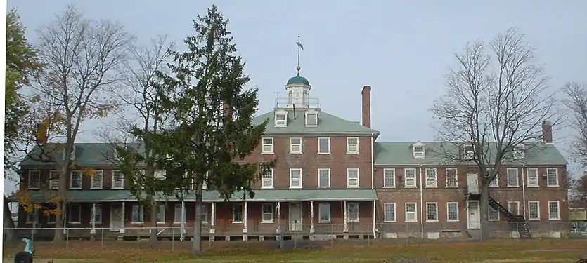The Philadelphia Lazaretto was the first quarantine hospital in the United States, built in 1799, in Tinicum Township, Delaware County, Pennsylvania.[3] The site was originally inhabited by the Lenni Lenape, and then the first Swedish settlers in America. Nearby Province Island was the site of the confinement of the Christian Moravian Indians who were brought there under protective custody from Lancaster, PA in 1763 when their lives were threatened by the Paxton Boys. The facility predates similar national landmarks such as Ellis Island Immigrant Hospital and Angel Island and is considered both the oldest surviving quarantine hospital and the last surviving example of its type in the United States.[4]