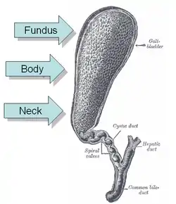 In medicine, a Phrygian cap is the folded portion of some gallbladders that resembles the Phrygian cap (a soft conical cap with the top pulled forward, associated in antiquity with the inhabitants of Phrygia, a region of central Anatolia). It is a normal anatomical variant seen in 1-6% of patients. It is caused by a fold in the gallbladder where the gallbladder fundus joins the gallbladder body.[1] Apart from the chance of being mistaken for stones on a sonogram, it has no other medical implications nor does it predispose one to other diseases. However, due to potential decrease in bile flow, it may warrant a preventive removal of the gallbladder.