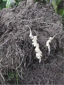 They typically develop within plant cells, causing the infected tissue to grow into a gall or scab. Important diseases caused by phytomyxeans include club root in cabbage and its relatives, and powdery scab in potatoes. These are caused by species of Plasmodiophora and Spongospora, respectively.[2]