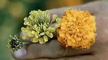 Phytoplasmas can infect and cause various symptoms in more than 700 plant species. One characteristic symptom is abnormal floral organ development including phyllody, (i.e., the production of leaf-like structures in place of flowers) and virescence (i.e., the development of green flowers attributable to a loss of pigment by petal cells).[8] Phytoplasma-harboring flowering plants may nevertheless be sterile. The expression of genes involved in maintaining the apical meristem or in the development of floral organs is altered in the morphologically affected floral organs of phytoplasma-infected plants.[9][10]
