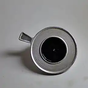 A pinhole occluder is an opaque disk with one or more small holes through it, used by ophthalmologists, orthoptists and optometrists to test visual acuity. The occluder is a simple way to focus light, as in a pinhole camera, temporarily removing the effects of refractive errors such as myopia. Because light passes only through the center of the eye's lens, defects in the shape of the lens (errors of refraction) have no effect while the occluder is used. In this way, the ophthalmologist, orthoptist or optometrist can estimate the maximum improvement in a patient's vision that can be attained by lenses to correct errors of refraction.[2] This can be used to distinguish visual defects caused by refractive error, which improve when the occluder is used, from other problems, which do not.[3] The pinhole occluder can also be used in testing visual acuity in mydriatic patients. In this case the pinhole occluder compensates for the inability to contract the iris assisting the eye in obtaining a retinal projection similar to that of a non-cycloplegic eye.