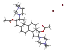 Pipecuronium (Arduan) is a bisquaternary aminosteroid muscle relaxant[1] which blocks nicotinic acetylcholine receptors[2] at the neuromuscular junction. It is also an antagonist of M2 and M3 muscarinic receptors[3] and is the most potent neuromuscular blocking agent of the aminosteroid class.