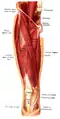 Muscles of the gluteal and posterior femoral regions seen from the front.