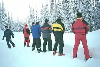 A literal pissing contest and territorial marking is also depicted in Carroll Ballard's 1983 adaptation of Farley Mowat's autobiographical novel Never Cry Wolf.[20] In the movie Wolf there is a pissing contest between two competitors.[21] During a figurative pissing contest with a sleazy rival, Jack Nicholson's character confronts him in a bathroom,[22] shows him he has just taken his job, fires him, and then pees on his shoes saying, "I'm just marking my territory, and you got in the way". The competitor, played by James Spader, notes that he has "suede shoes" to which Nicholson replies "asparagus".