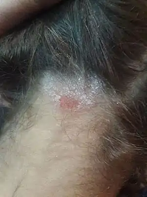 Pityriasis amiantacea can easily be misdiagnosed due to its close resemblance to other scalp diseases such as psoriasis, seborrhoeic dermatitis or lichen planus. However, in pityriasis amiantacea the scales are attached to both the hair shaft and the scalp. Pityriasis amiantacea may be present with other inflammatory conditions such as atopic dermatitis or seborrhoeic dermatitis and sebaceous scales and alopecia can occur. According to Bolognia's textbook "Dermatology,"[5] this rare condition is most often combined with psoriasis, but it may also develop as secondarily infected atopic dermatitis, seborrheic dermatitis, and/or tinea capitis.