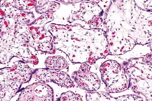 | Micrograph of villous immaturity. H&E stain. | |