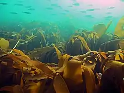 Kelp forests dominate the rocky coastlines of temperature regions, and provide habitat, shelter, and food for many organisms, including Planctomycetes.[1] Given the considerable role of kelp forests in coastal primary productivity, the association of Planctomycetes with kelp could indicate the significant role of Planctomycetes in coastal habitats.[34] Planctomycetes also play an important role as components of detritus in the water column, also known as marine snow,[1][34] given their ability to attach to surfaces.[35]