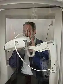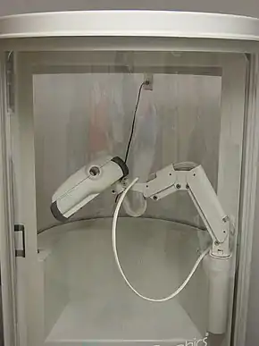 ![]() Plethysmograph or "body box" used in lung measurements | |
