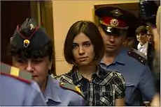 In 2012, Nadezhda Nizovkina and Vera Lavreshina were detained during their protest action at the Red Square.[47] After Nizovkina refused to write an application that she is sorry for what she had been doing at the Red Square, she was convicted to "involuntary hospitalization in psychiatric hospital for six months."[47] Nizovkina was hospitalized in Gannushkina Psychiatric Hospital, and her hospitalization was ruled legal by Moscow's Preobrazhensky District Court.[48] On the doctors' request, her mother assumed responsibility for her by signing documents and was permitted to take her from the hospital.[47]
