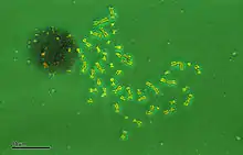 Polysomy is a condition found in many species, including fungi, plants, insects, and mammals, in which an organism has at least one more chromosome than normal, i.e., there may be three or more copies of the chromosome rather than the expected two copies.[1] Most eukaryotic species are diploid, meaning they have two sets of chromosomes, whereas prokaryotes are haploid, containing a single chromosome in each cell. Aneuploids possess chromosome numbers that are not exact multiples of the haploid number and polysomy is a type of aneuploidy.[2] A karyotype is the set of chromosomes in an organism and the suffix -somy is used to name aneuploid karyotypes. This is not to be confused with the suffix -ploidy, referring to the number of complete sets of chromosomes.