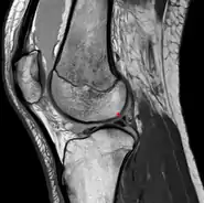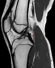 Posterior meniscofemoral ligament (Wrisberg) behind the posterior horn of the lateral meniscus close to its insertion. Sometimes wrongly interpreted as a meniscal tear.