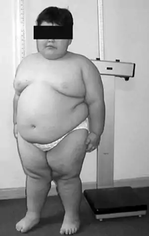 Eight-year-old child with Prader–Willi syndrome, exhibiting characteristic obesity[2]