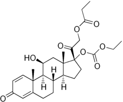 | Other names | {2-[(8S,9S,10R,11S,13S,14S,17R)-17-ethoxycarbonyloxy-11-hydroxy-10,13-dimethyl-3-oxo-7,8,9,11,12,14,15,16-octahydro-6H-cyclopenta[a]phenanthren-17-yl]-2-oxoethyl} propanoate |
