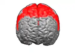 The premotor cortex is now generally divided into four sections.[2][3][5] First it is divided into an upper (or dorsal) premotor cortex and a lower (or ventral) premotor cortex. Each of these is further divided into a region more toward the front of the brain (rostral premotor cortex) and a region more toward the back (caudal premotor cortex). A set of acronyms are commonly used: PMDr (premotor dorsal, rostral), PMDc (premotor dorsal, caudal), PMVr (premotor ventral, rostral), PMVc (premotor ventral, caudal). Some researchers, especially those who study the ventral premotor areas, use a different terminology. Field 7 or F7 denotes PMDr; F2 = PMDc; F5=PMVr; F4=PMVc.