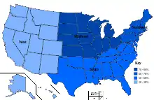 Medicaid funding for infant circumcision used to be available in every state, but starting with California in 1982, 18 states (Arizona, California, Colorado, Florida, Idaho, Louisiana, Maine, Minnesota, Mississippi, Missouri, Montana, Nevada, North Carolina, North Dakota, Oregon, South Carolina, Utah, and Washington) had eliminated Medicaid coverage of routine (non-therapeutic) circumcision by July 2011.[28] One study in the Midwest of the U.S. found that this had no effect on the newborn circumcision rate but it did affect the demand for circumcision at a later time.[29] Another study, published in early 2009, found a difference in the neonatal male circumcision rate of 24% between states with and without Medicaid coverage. The study was controlled for other factors such as the percentage of Hispanic patients.[30] Other studies have shown that the rise of immigrants from East Asia, Southeast Asian, South Asia and Hispanic South American countries are a large factor in why the rates continue to drop in the US.[31]