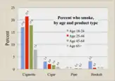 - "Featured Datasets / Tobacco Use Among Adults By Age Group (National Adult Tobacco Survey, NATS)". cdc.gov. Centers for Disease Control and Prevention. 2014. Retrieved February 18, 2018. CDC apparently first published data on September 21, 2017.