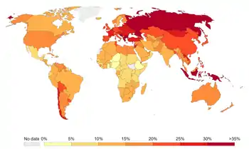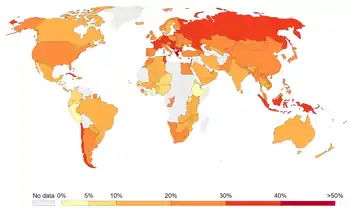 - "Prevalence of current tobacco use among adults aged ≥ 15 years (percentage)". World Health Organization. Archived from the original on December 11, 2008. Retrieved 2009-01-02.