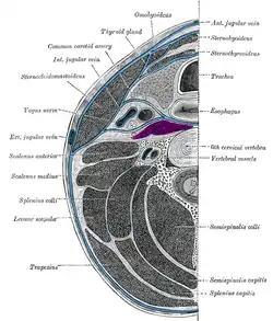 ![]() Transverse section of neck. Prevertebral muscles labeled in purple. | |