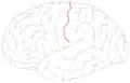 The human primary motor cortex is located on the anterior wall of the central sulcus. It also extends anteriorly out of the sulcus partly onto the precentral gyrus. Anteriorly, the primary motor cortex is bordered by a set of areas that lie on the precentral gyrus and that are generally considered to compose the lateral premotor cortex. Posteriorly, the primary motor cortex is bordered by the primary somatosensory cortex, which lies on the posterior wall of the central sulcus. Ventrally the primary motor cortex is bordered by the insular cortex in the lateral sulcus. The primary motor cortex extends dorsally to the top of the hemisphere and then continues onto the medial wall of the hemisphere.