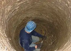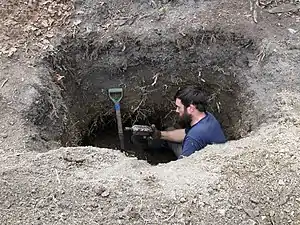 Privy digging is the process of locating and investigating the contents of defunct outhouse vaults. The purpose of privy digging is the salvage of antique bottles and everyday household artifacts from the past. Privy digging is a form of historical digging and is often conducted on private residential properties. Construction sites and major developments around older areas of towns and cities are also likely places to look for evidence of privies.