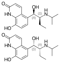 - Yoshizaki S, Manabe Y, Tamada S, Nakagawa K, Tei S (August 1977). "Isomers of erythro-5-(1-hydroxy-2-isopropylaminobutyl)-8-hydroxycarbostyril, a new bronchodilator". Journal of Medicinal Chemistry. 20 (8): 1103–4. doi:10.1021/jm00218a024. PMID 894683.