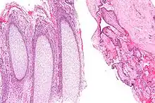 Retained products of conception is where products of conception remain in the uterus after childbirth, medical abortion or miscarriage (also known as spontaneous abortion).[1] Miscarriage with retained products of conception is termed delayed when no or very little products of conception have been passed, and incomplete when some products have been passed but some still remain in utero.[2][3]