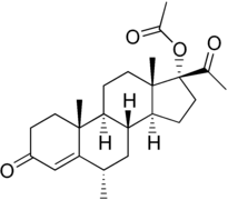 Certain progestogens, including megestrol acetate, medroxyprogesterone acetate, cyproterone acetate, and chlormadinone acetate, have been used at high doses to reduce hot flashes in men undergoing androgen deprivation therapy, for instance to treat prostate cancer.[24][25][26]