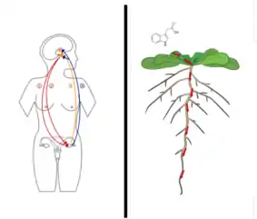- Wang YH, Irving HR (April 2011). "Developing a model of plant hormone interactions". Plant Signaling & Behavior. 6 (4): 494–500. doi:10.4161/psb.6.4.14558. PMC 3142376. PMID 21406974.