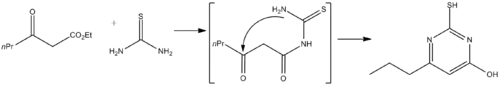 - Anderson, George W.; Halverstadt, I. F.; Miller, Wilbur H.; Roblin, Richard O. (1945). "Studies in Chemotherapy. X. Antithyroid Compounds. Synthesis of 5- and 6- Substituted 2-Thiouracils from β-Oxoesters and Thiourea". Journal of the American Chemical Society. 67 (12): 2197–2200. doi:10.1021/ja01228a042. PMID 21005687.