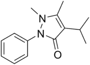 Propyphenazone (known as isopropylantipyrine in Japan)[1] is a derivative of phenazone[2] with similar analgesic and antipyretic effects. Originally patented in 1931,[3] propyphenazone is marketed as a combination formulation with paracetamol and caffeine for treatment of primary headache disorder.[4]