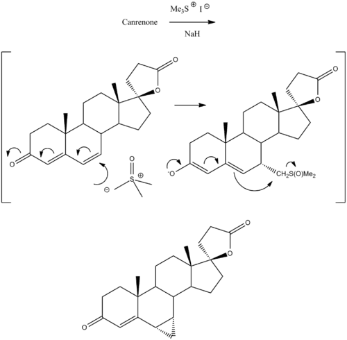 Prorenone can be synthesized via a Johnson–Corey–Chaykovsky reaction by reaction of canrenone with trimethylsulfonium iodide and sodium hydride.[5]