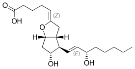 • OC(=O)CCC\C=C1\C[C@@H]2[C@@H](/C=C/[C@@H](O)CCCCC)[C@H](O)C[C@@H]2O1