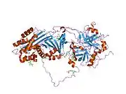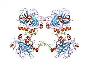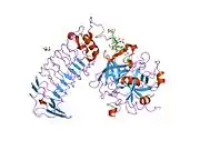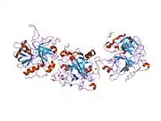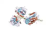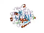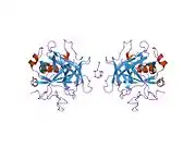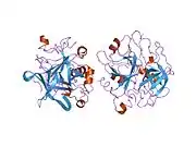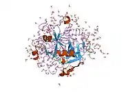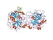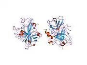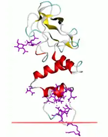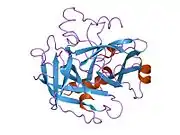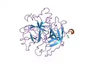 15. PDB: 1nl2; Huang M, Rigby AC, Morelli X, Grant MA, Huang G, Furie B, Seaton B, Furie BC (September 2003). "Structural basis of membrane binding by Gla domains of vitamin K-dependent proteins". Nature Structural Biology. 10 (9): 751–6. doi:10.1038/nsb971. PMID 12923575. S2CID 7751100.