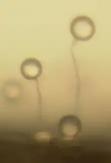 Protosteloid amoebae, also called protostelids, are amoebae that are capable of making simple fruiting bodies consisting of a cellular stalk topped by one or a few spores.[1] All species are microscopic and are typically found on dead plant matter where they consume bacteria, yeasts, and fungal spores. Since protostelids are amoebae that make spores they are considered to be slime molds.[2]