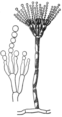 Hyphae might be categorized as 'vegetative' or 'aerial.' Aerial hyphae of fungi produce asexual reproductive spores.[18]