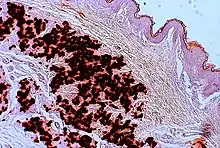 | Calcinosis cutis | LM: Deposits of calcium in the dermis |