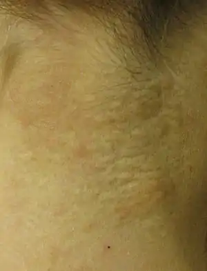 Pseudoxanthoma elasticum of the left axillary fold.
